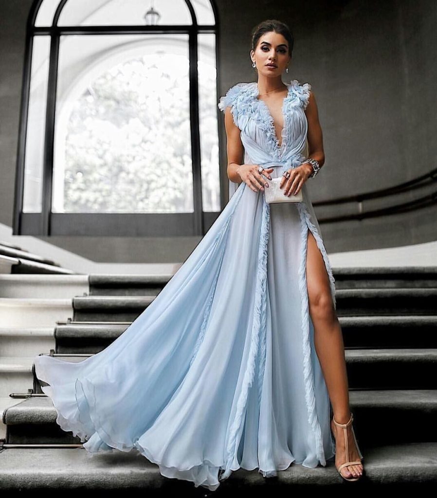 حيث تجدين الألوان الناعمة تسيطر على العام 2024، بما فيها الأزرق الفاتح الذي يضفي بريق الأميرات، فيمكن استخدامه في تصميم فستان زفاف عصري، أو فستان سهرة رائع. كما يمكن استخدامه في الملابس الصيفية اليومية لمحاربة درجة الحرارة والانطلاق ببريق الثلج.